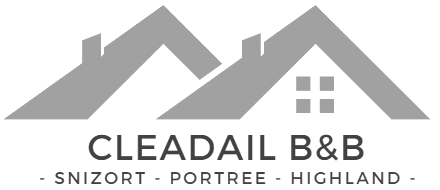 The name of the Guest House, Cleadail, is also the name of the main settlement on the Isle of Eigg. It is from the Gaelic for “Cliff Valley”. Nestled below Beinn a’ Chearcaill and looking out over Lock Snizort and beyond to the Outer Hebrides, we thought it perfectly describes the location of the Guest House.